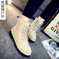 韩版马丁靴女加绒学生系带平底短靴女士保暖加厚棉鞋防滑雪地靴