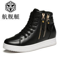 冬季加绒棉鞋女平底厚底内增高白色高帮鞋韩版系带百搭休闲学生女棉鞋