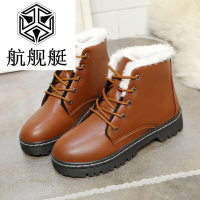 2017冬季新款加绒短靴粗跟女靴子学生棉鞋系带厚底保暖雪地靴女