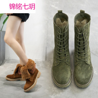 冬季牛皮女靴新款加绒保暖女靴女厚毛棉靴系带厚底防滑高帮雪地靴