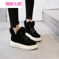 2017秋冬新款女鞋学院风系带棉鞋休闲平底鞋保暖厚毛绒鞋雪地靴女