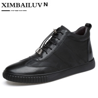 路蒙卡帝品牌韩版时尚街头百搭高帮板鞋秋冬季新款男鞋英伦时尚休闲皮鞋潮流厚底系带加棉皮鞋男