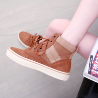 高帮鞋女休闲秋季新款韩版女鞋百搭真皮系带平底单鞋女潮板鞋