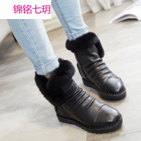 休闲新款中筒真皮女鞋 防滑柔软橡胶底雪地靴 圆头保暖雪地靴代发