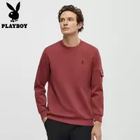 [细纹格]花花公子新款红色卫衣男士款商务休闲运动宽松圆领上衣