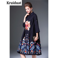 Kruidvat春新款复古女装中国民族风重工刺绣花宽松大码显瘦棉麻连衣裙子B058