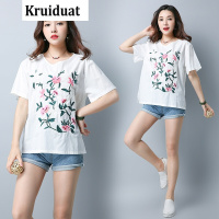Kruidvat2017夏季民族风文艺宽松绣花棉麻上衣白色