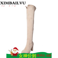 SUNTEK不过膝高筒长靴女2022年新款秋季小个子皮靴粗跟加绒长筒骑士靴女