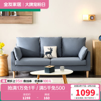 全友家居 北欧简约布艺沙发 环抱式靠背 恒压高弹海绵填充 仿棉麻面料可拆洗沙发