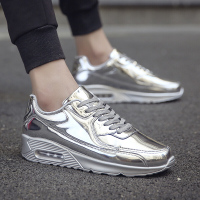 权志龙鹿晗杨洋明星同款秋季男士亮面漆皮鞋镜面鞋运动气垫鞋潮流土豪金银色男鞋子个性潮