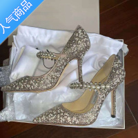 SUNTEK一字扣单鞋女银色性感高跟鞋水晶伴娘鞋法式主婚纱婚鞋大码41一43