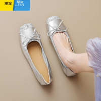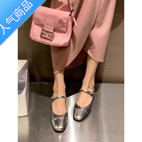 聚范法式单鞋女2024新款秋平底百搭蝴蝶结奶奶鞋软底浅口银色玛丽珍鞋