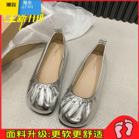 聚范平底褶皱单鞋女2024夏季新款浅口一脚蹬软皮休闲百搭配裙子奶奶鞋