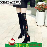 高跟民族风绣花靴子中高筒老北京布鞋内增高坡跟绣花鞋女靴单靴子