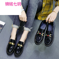 锦铭七玥英伦黑色小皮鞋女低跟厚底2018春秋季新款韩版百搭内增高女鞋单鞋