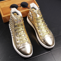 男高帮鞋韩版发型师个性铆钉皮鞋英伦厚底百搭内增高休闲短靴子男