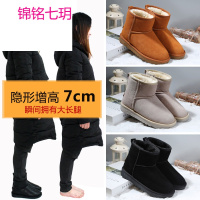 锦铭七玥厂新款内增高真皮雪地靴女短靴加厚保暖学生面包鞋女
