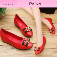 女鞋2018新款浅口四季小单鞋舒适平底工作鞋女超火内增高坡跟单鞋