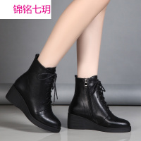 短靴子女秋冬季新款欧美风真皮女靴坡跟内增高短靴加绒雪地靴女鞋