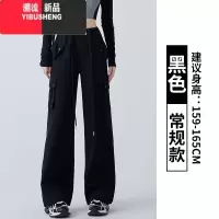 YIBUSHENG黑色美式工装裤女季2024新款高腰休闲显瘦直筒卫裤小个子运动裤