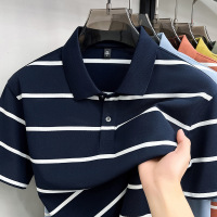 长绒棉色织短袖polo衫男款2026夏季翻领条纹透气男款短袖T恤
