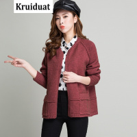 秋冬针织衫加厚毛衣女开衫女圆领复古麻花开衫慵懒外套