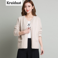 Kruidvat春装2017新款韩版宽松长袖针织衫女开衫短款毛衣上衣外套M6