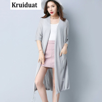 曲竹圆领开衫针织外套女新款百搭薄款休闲长袖纯色上衣防晒衫