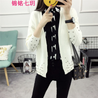 锦铭七玥2017春秋装新款针织衫女开衫韩版短款宽松外搭钉珠v领毛衣女外套