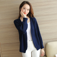 韩版秋冬季外搭短款毛衣长袖针织衫宽松无扣羊绒衫女开衫外套加厚藏蓝均码
