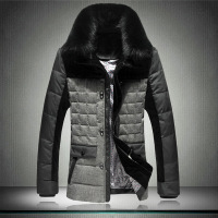 中老年男士真狐狸毛领保暖加厚短款羽绒服男棉袄外套YR-
