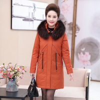 新款冬装中老年女装连帽羽绒服毛领修身中长款加厚大码外套妈妈装