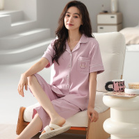 纯棉睡衣女夏款短袖七分裤开衫款妈妈大码休闲家居服女款2025新款