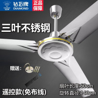 钻石牌吊扇工业家用客厅铁叶宿舍吊式电风扇餐厅轻音大风力不锈钢 遥控款(免布线)-三叶不锈钢(100W)