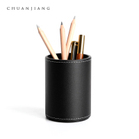 三维工匠龙泉青瓷创意时尚文具毛笔圆珠笔铅笔多功能复古办公圆形陶瓷笔筒 小号弟窑梅子青笔筒