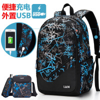 2020新款双肩包男士旅行休闲书包中学生初中生潮大学生电脑背包男NEW LAKE 简约充电款经典黑
