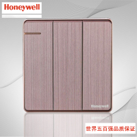 霍尼韦尔开关插座面板优雅系列金色三开单控开关86型三联双控开关带荧光条