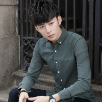 秋装新款青年纯棉衬衫男式士衬衫韩版修身长袖方领休闲时尚衬衫潮