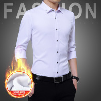 加绒秋冬2017衬衫男式士青年衬衫韩版修身长袖方领休闲时尚衬衫潮