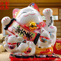 花芙招财猫摆件商店铺开业发财送礼品陶瓷储存钱罐大小号电动摇手