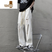 YANXU欧美高街vibe裤子美式街头白色牛仔裤男款夏季直筒宽松破洞乞丐裤