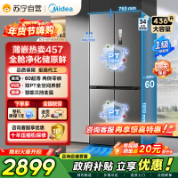 美的M60系列457十字双开四开门多门超薄嵌入式底部散热大容量一级双变频智能家用冰箱 MR-457WUSPZE苍穹灰