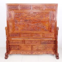 粤顺红木屏风 雕花实木隔断 花梨木玄关 新中式客厅家具锦绣河山屏风P03