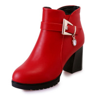 2017新款2017秋冬新款韩版短靴女靴子粗跟高跟鞋防水台圆头时尚百搭潮女鞋