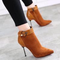 潮款皮带扣尖头女靴马丁靴2017秋冬新款韩版绒面细跟短靴子高跟鞋