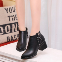 秋冬新款欧美百搭显瘦尖头粗跟高跟鞋短靴及裸靴马丁靴女靴子