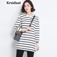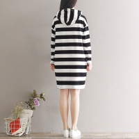 2017春季新款森女系黑白条纹修身显瘦学院风连帽长袖卫衣连衣裙夏