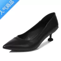 SUNTEK黑色皮鞋女工作鞋职业软底礼仪鞋中跟面试上班鞋单鞋女尖头高跟鞋
