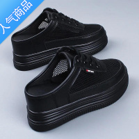 SUNTEK小白鞋女2023夏季镂空透气一脚蹬半拖鞋内增高6cm学生网鞋黑色鞋
