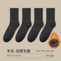 恒源祥男士中筒加绒加厚男袜子男生黑色羊毛毛巾保暖长袜冬季防臭